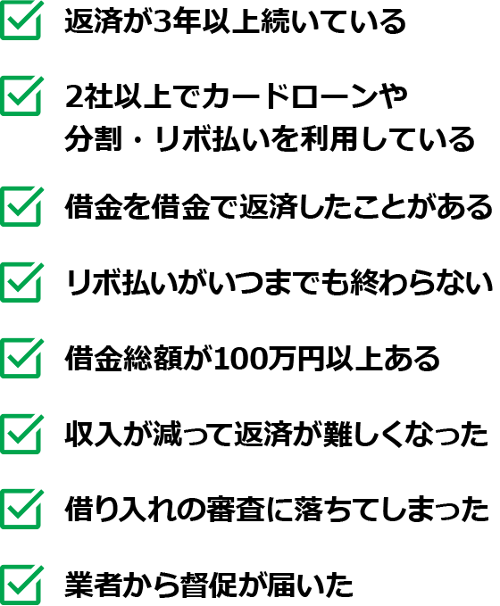 消費者金融、銀行カードローン、スマホ決済アプリなど、借入先を問わず対応可能。